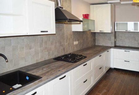 Blat w kolorze Sosna Jackson. Praca naszych partnerów MEBLIroom kuchnie ELNOVA