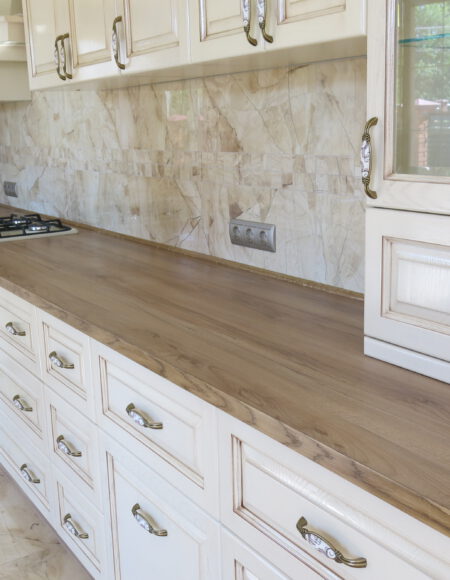 Prywatny dom (blat, kuchenny fartuch, stół oraz szafka łazienkowa – w jednym dekorze)