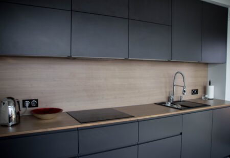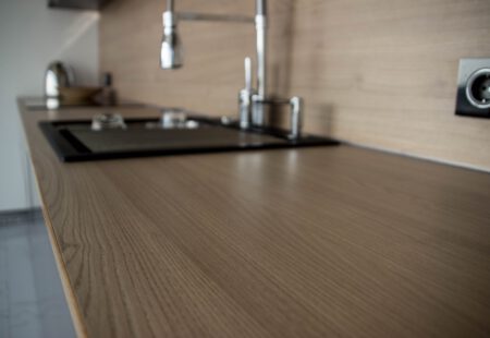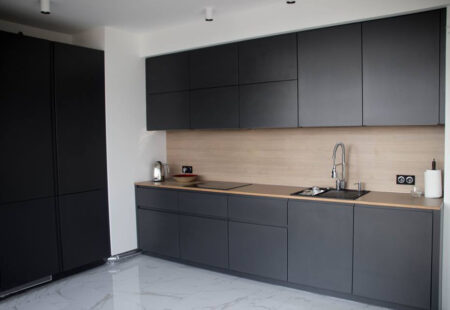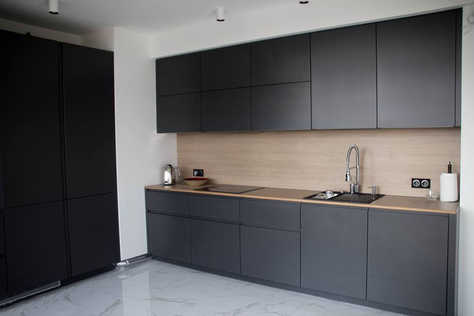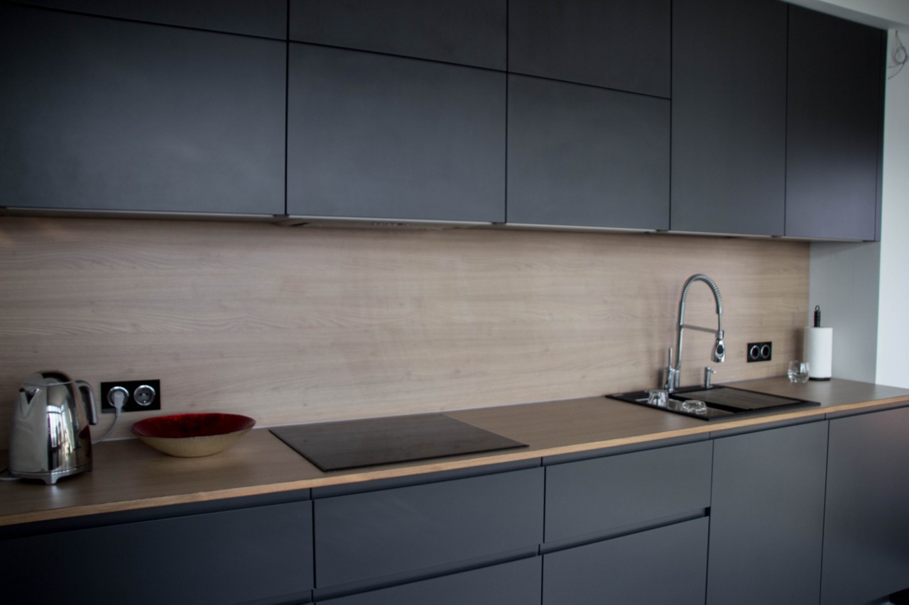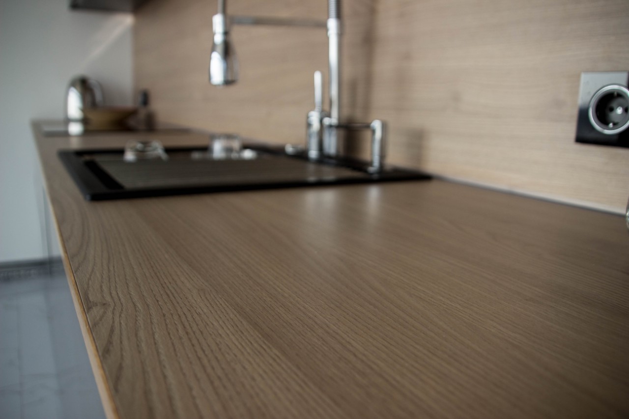 Praca naszych partnerów ElnovaLviv została uzupełniona naszym blatem i panelem ściennym w dekorze – Naturalne drewno