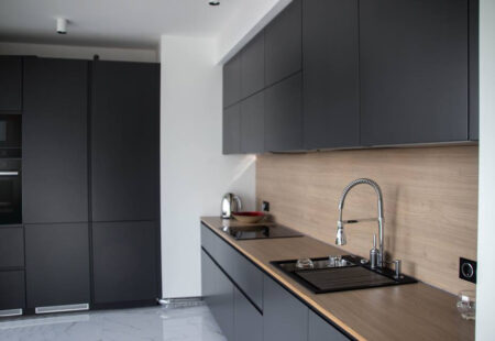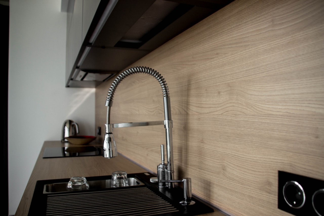 Praca naszych partnerów ElnovaLviv została uzupełniona naszym blatem i panelem ściennym w dekorze – Naturalne drewno - De Art Group