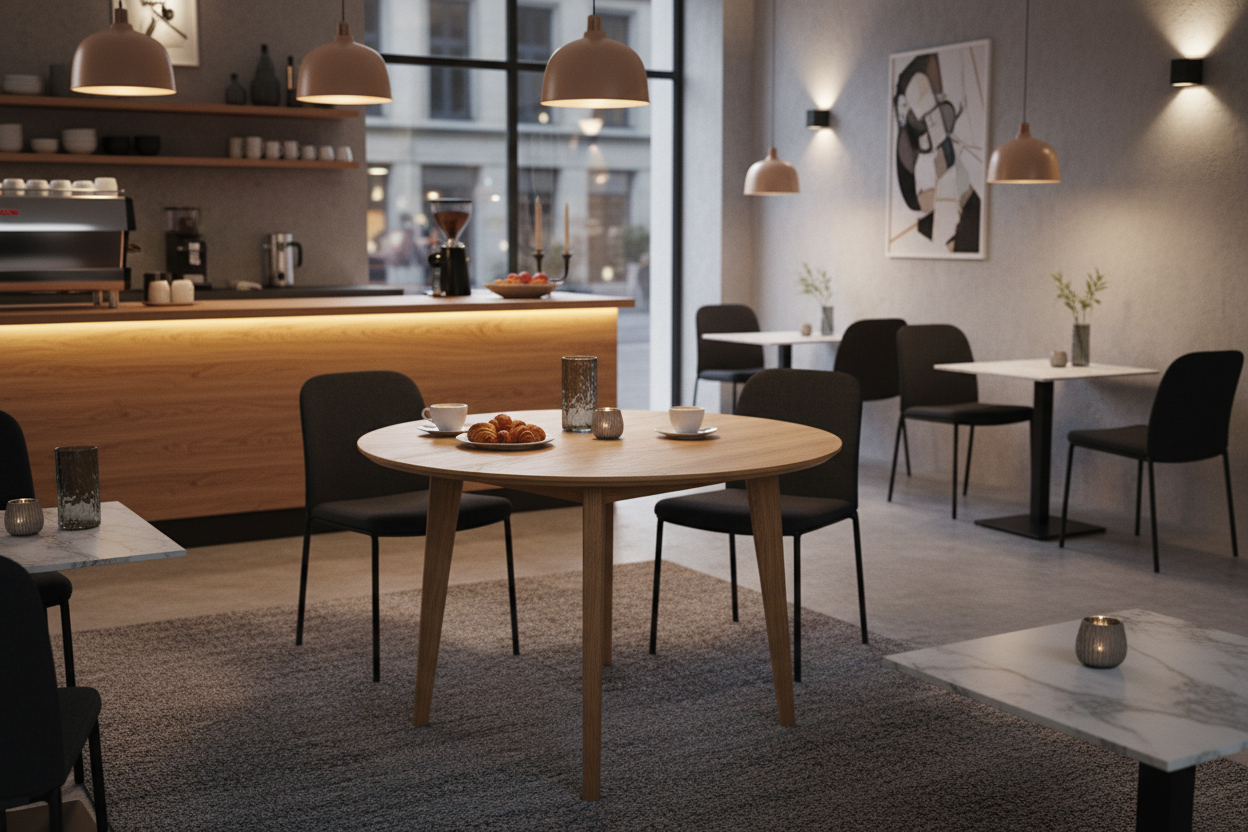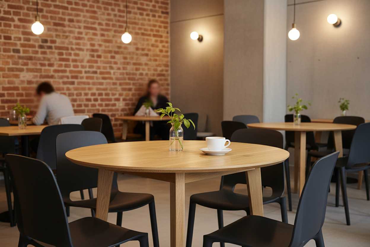 Lekka i elegancka forma stołu Oliver idealnie pasuje zarówno do kompaktowej kuchni, jak i do niewielkich przytulnych wnętrz. Stół ten łączy w sobie funkcjonalną prostotę i elegancką estetykę, co czyni go subtelnym akcentem w Twojej przestrzeni domowej, a wyrafinowane nogi z naturalnego jesionu wnoszą poczucie spokoju, ciepła i komfortu.