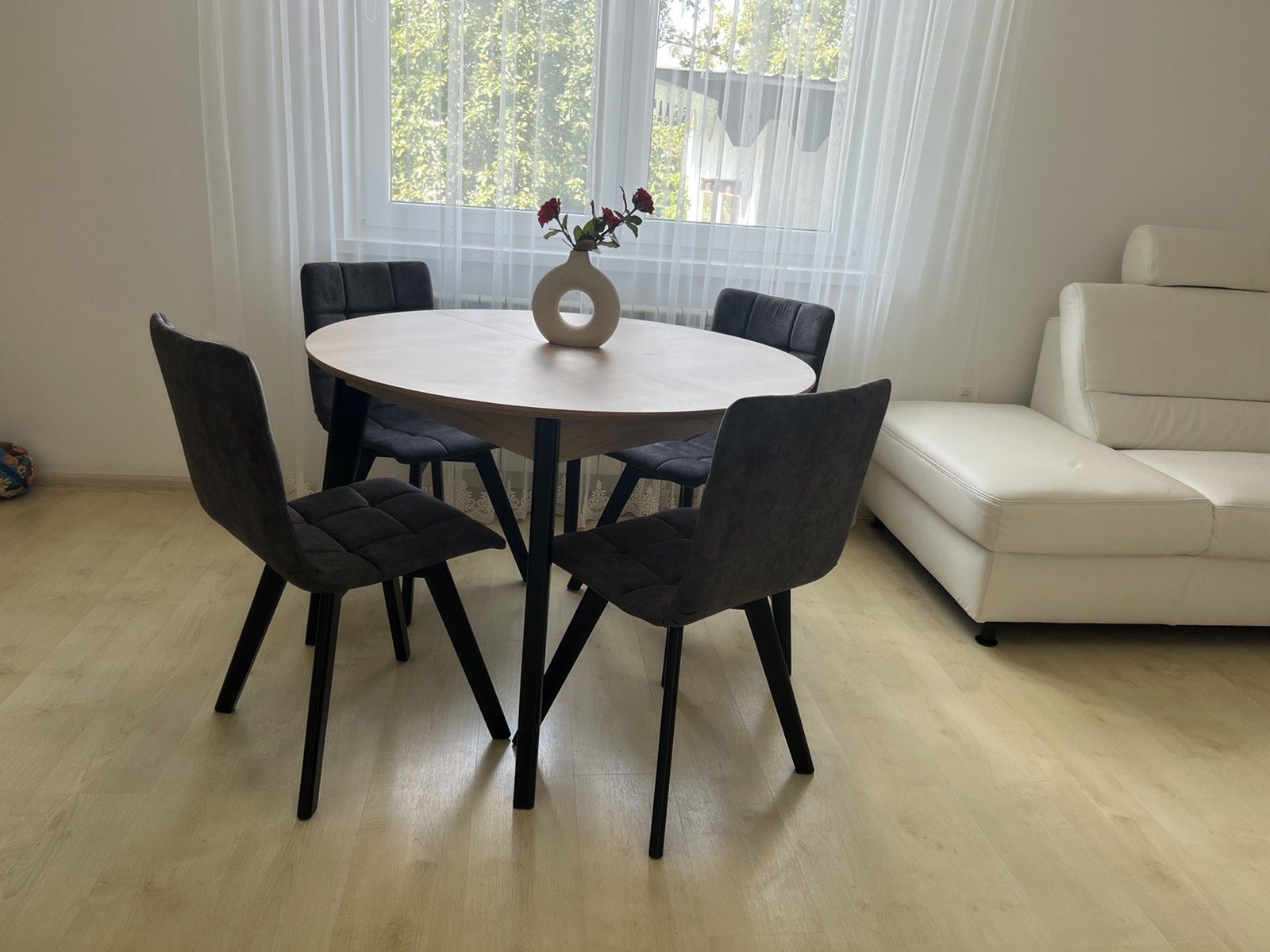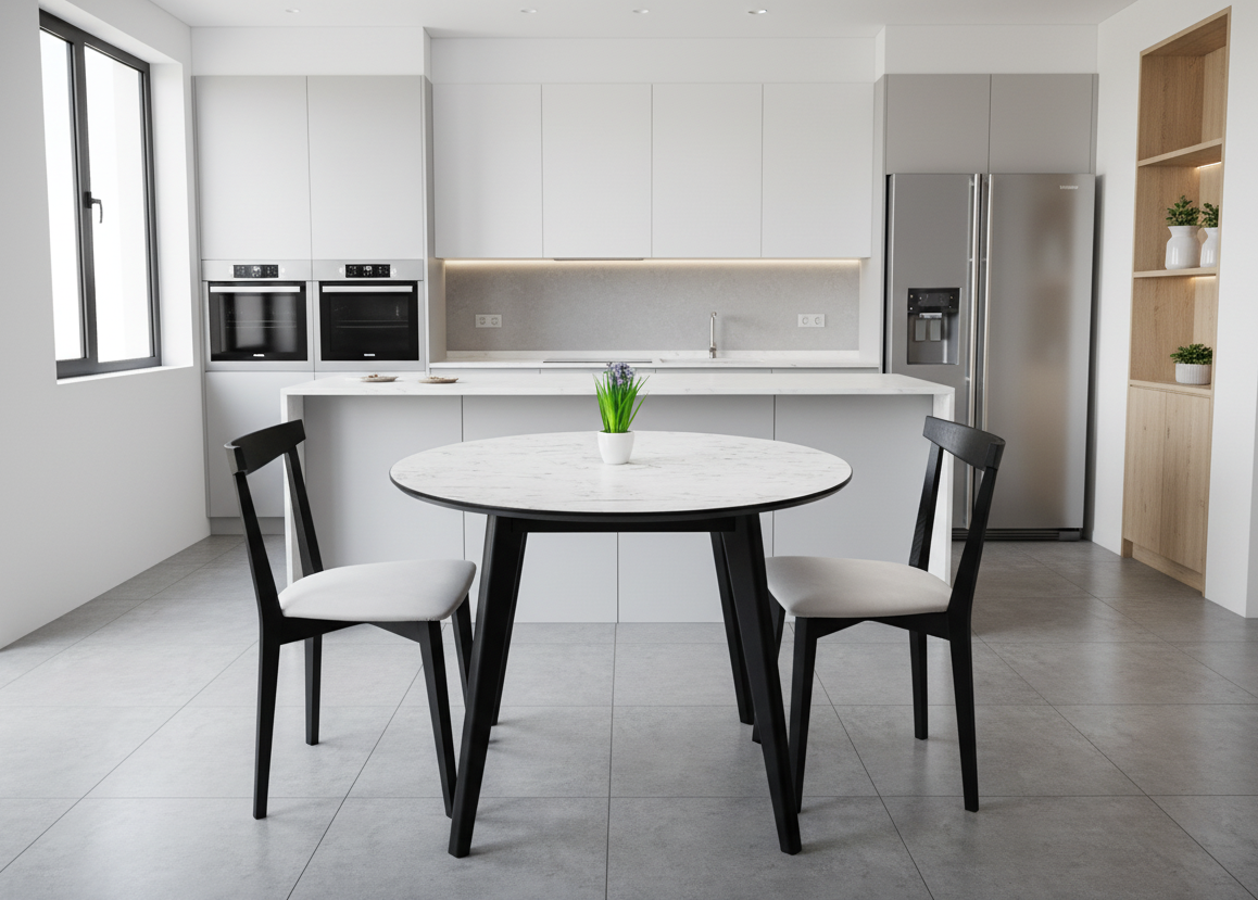 Lekka i elegancka forma stołu Oliver idealnie pasuje zarówno do kompaktowej kuchni, jak i do niewielkich przytulnych wnętrz. Stół ten łączy w sobie funkcjonalną prostotę i elegancką estetykę, co czyni go subtelnym akcentem w Twojej przestrzeni domowej, a wyrafinowane nogi z naturalnego jesionu wnoszą poczucie spokoju, ciepła i komfortu.